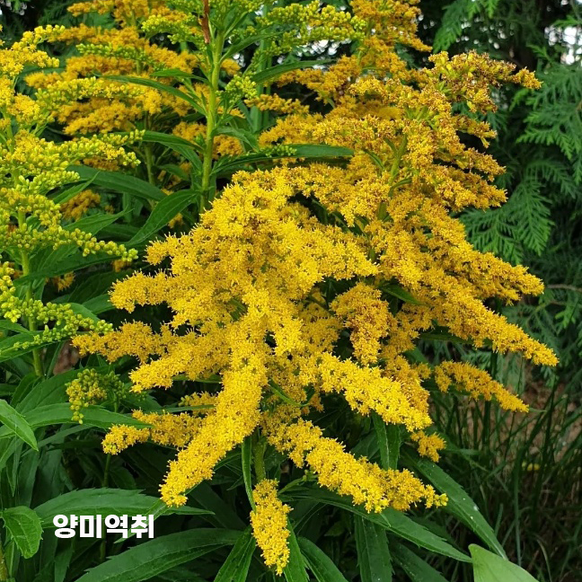 서양 민들레가 토종 민들레의 자리를 빼앗듯 우리 미역취의 자리도 뺏을 염려가 됩니다.